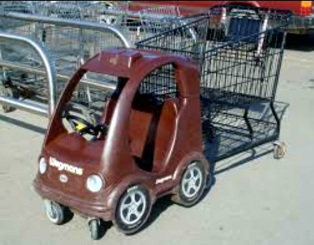 On the surface one would assume that the car-cart is a fun distraction for children who have to be present during a shopping outing. In reality these carts were designed to be a special form of psychological torture for the unfortunate parents who are forced to utilize them.