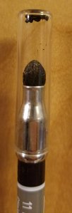 It looks totally fine at first glance, but take a closer gander. You will see two caps; one on each end. The untrained eye (mine) would think it’s no big deal. How nice actually that you can differentiate the smudger thing from the actual pencil. Ok, cool. I go to use it the first time and it glides on like magic. I take off the cap from the other side, smudge away and voila! I am the best thing this mirror has seen all morning.